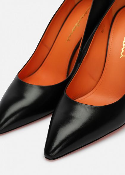 Яркий акцент — тонкая подошва фирменного оранжевого оттенка Arancio Santoni.