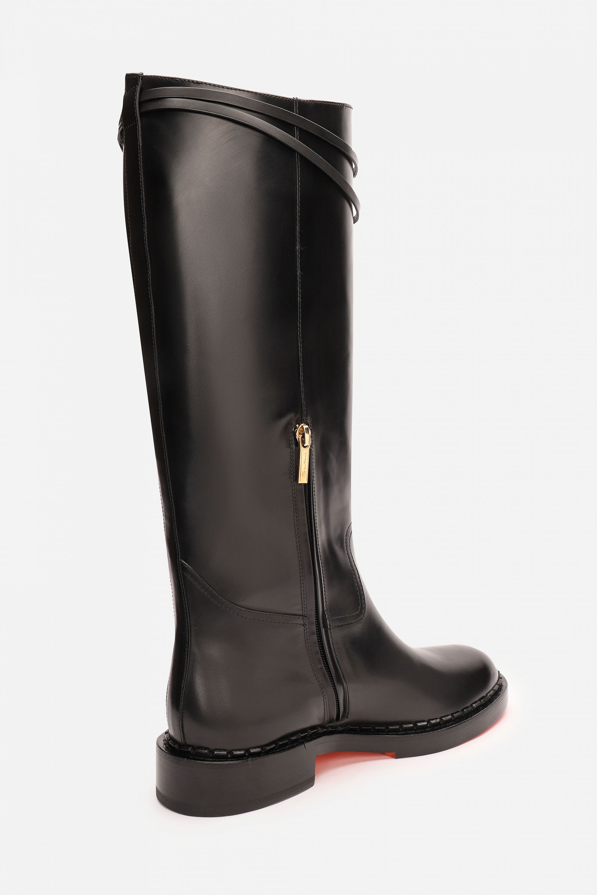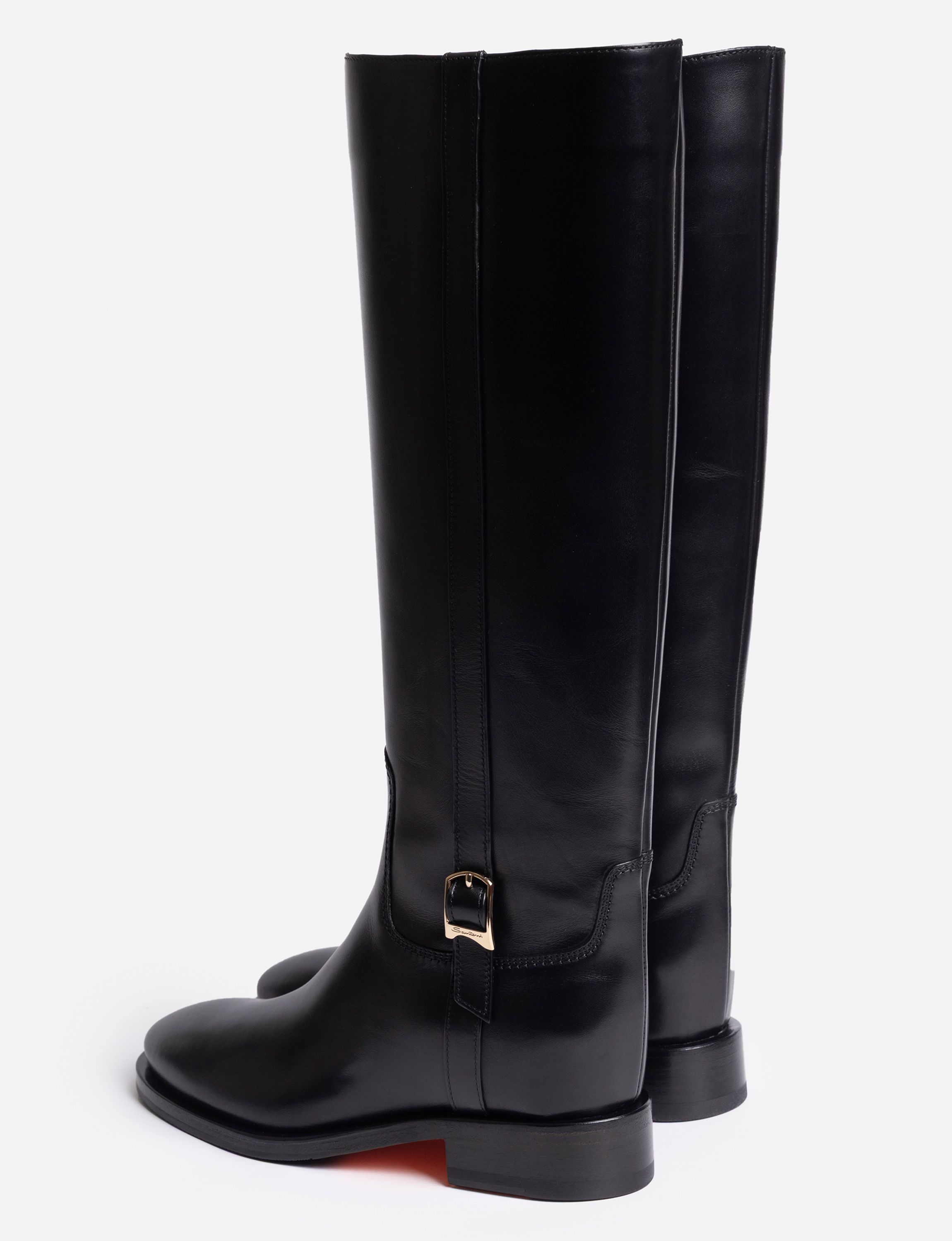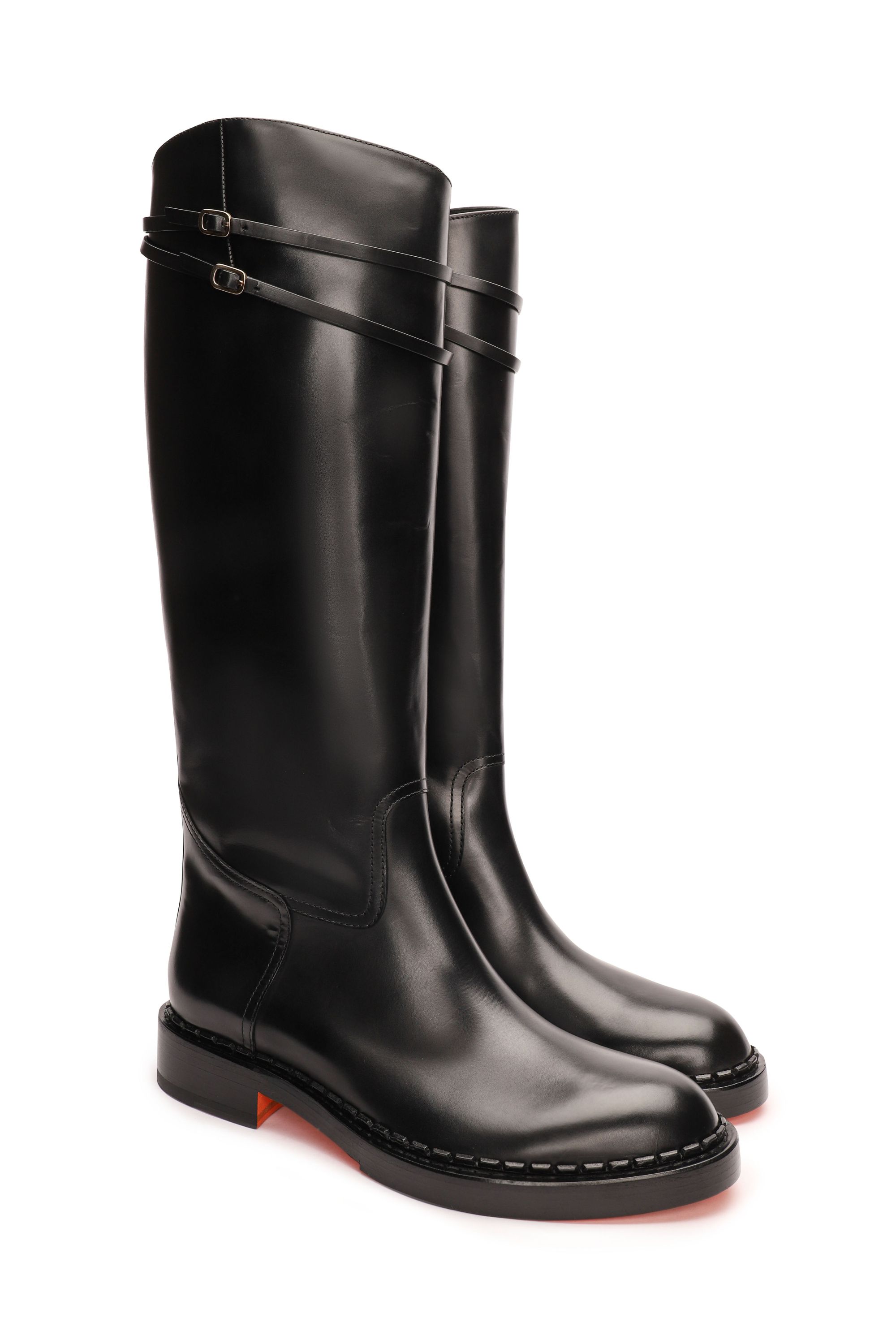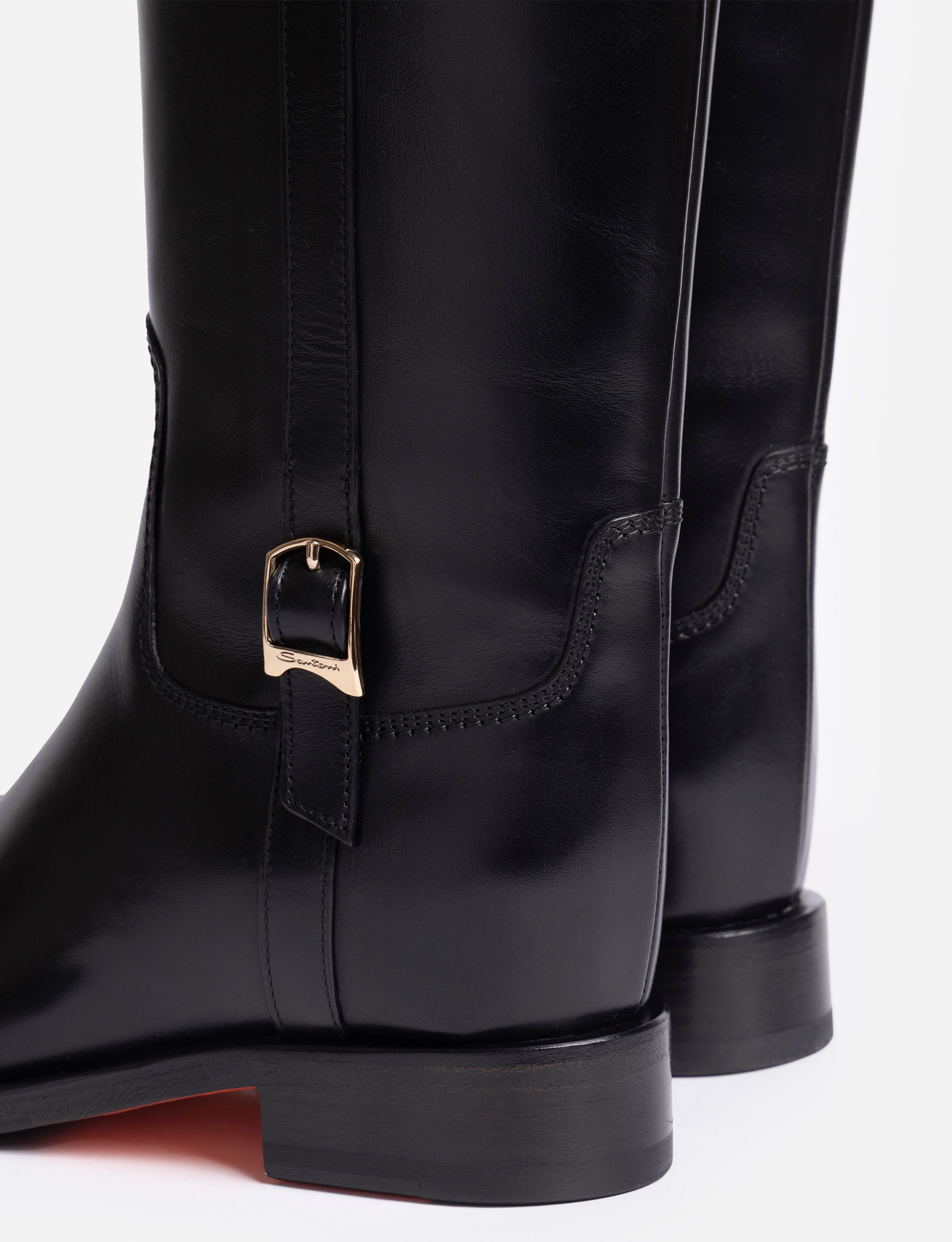 Туфли из лаковой кожи с затемненными носами и каблуками безупречно совмещают в себе женственный силуэт и фирменный стиль Santoni. Модель с открытой пяткой имеет квадратный нос, средний трапецевидный каблук и ремешок на резинке. Каждая пара обуви бренда Santoni оснащена чипом с технологией NFC, гарантирующей оригинальность продукта.
