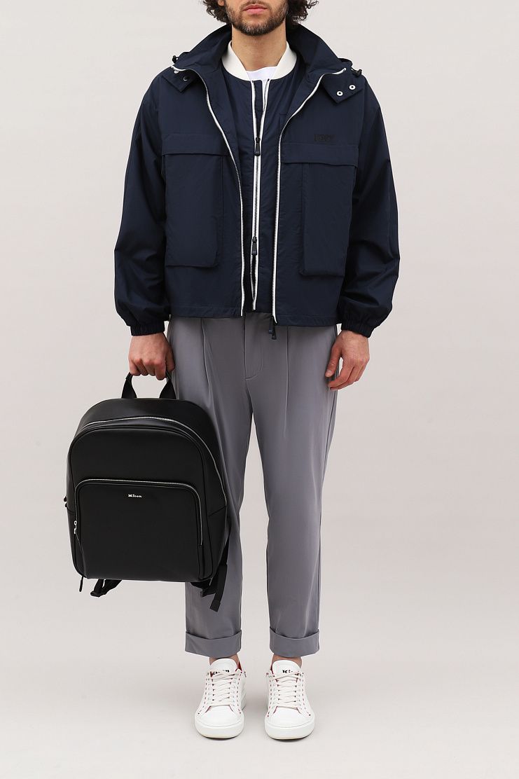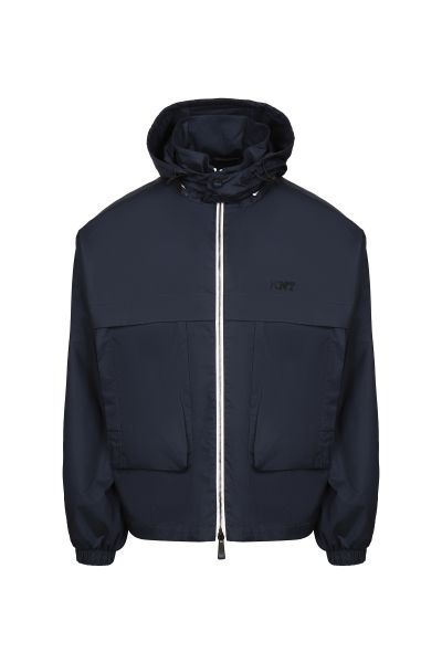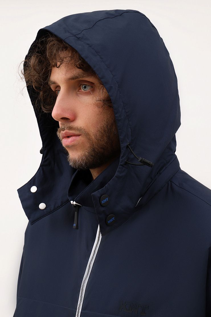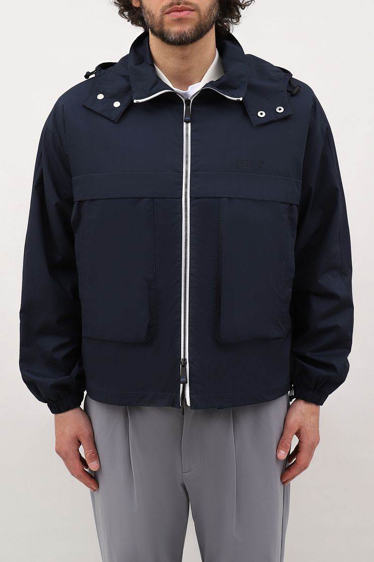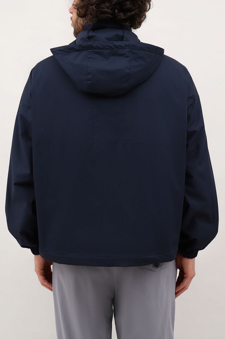 Ветровка отлично подойдет для дождливой, ветренной погоды. Модель свободного кроя, на подкладке имеет воротник-стойку, съемный капюшон на затяжках, большие накладные карманы и застежку на молнию.