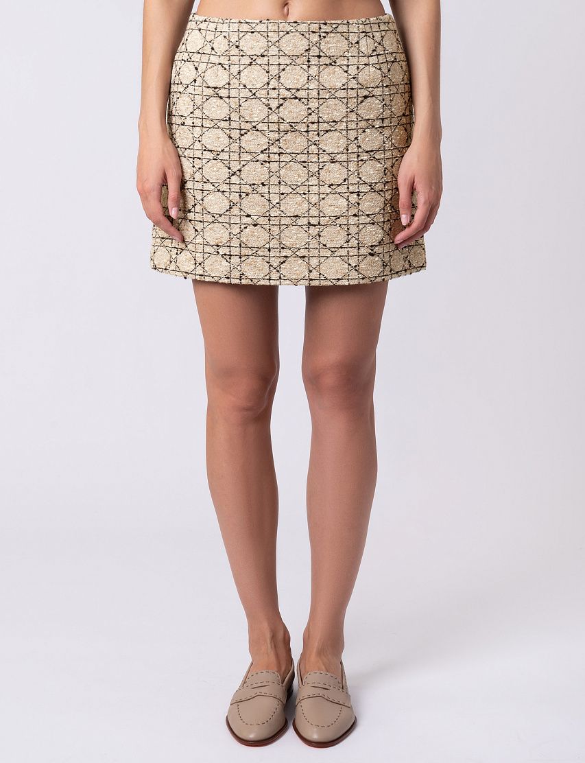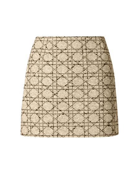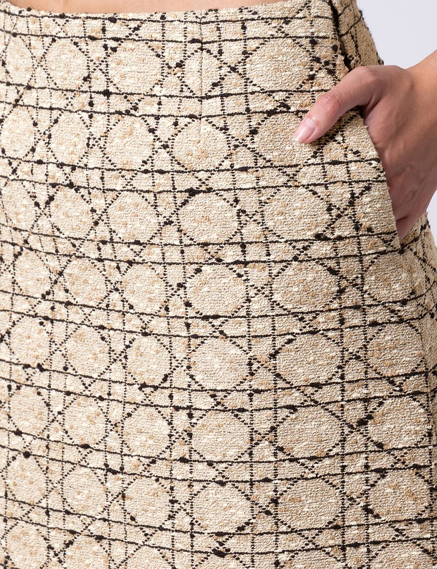 Для пошива мини-юбки с узнаваемым мотивом Cannage использовали смесовый буклированный твид. Модель А-силуэта с гладким шелковым подкладом застегивается на молнию сзади. Рост модели: 174 см. Размер: 36.