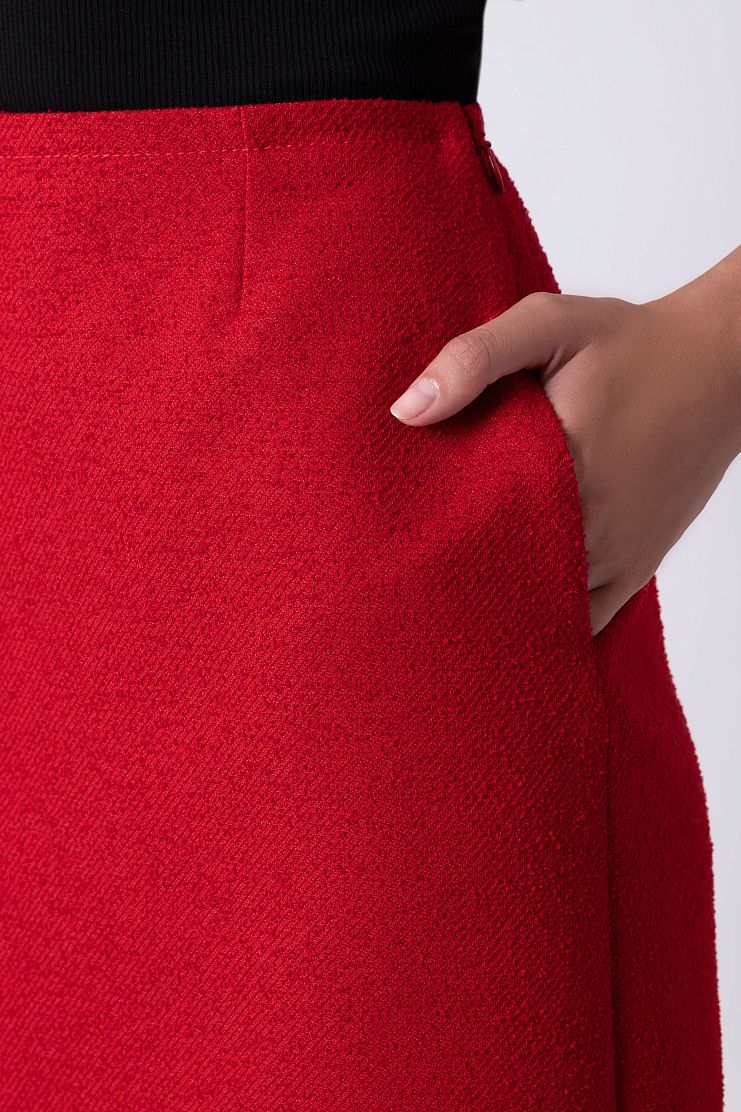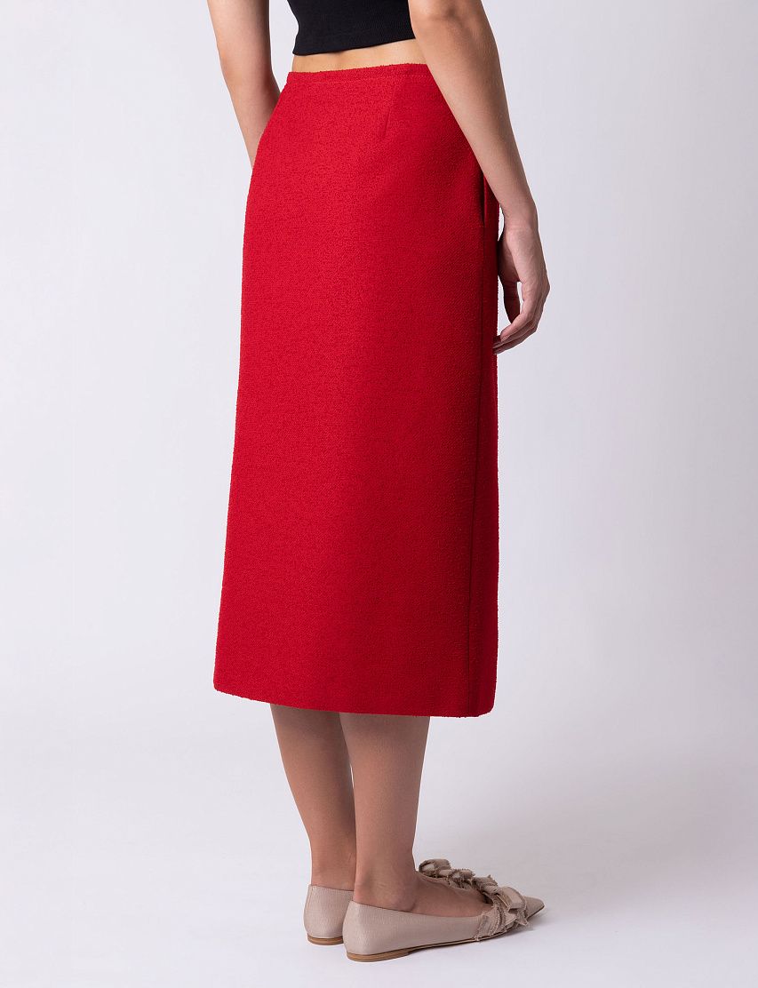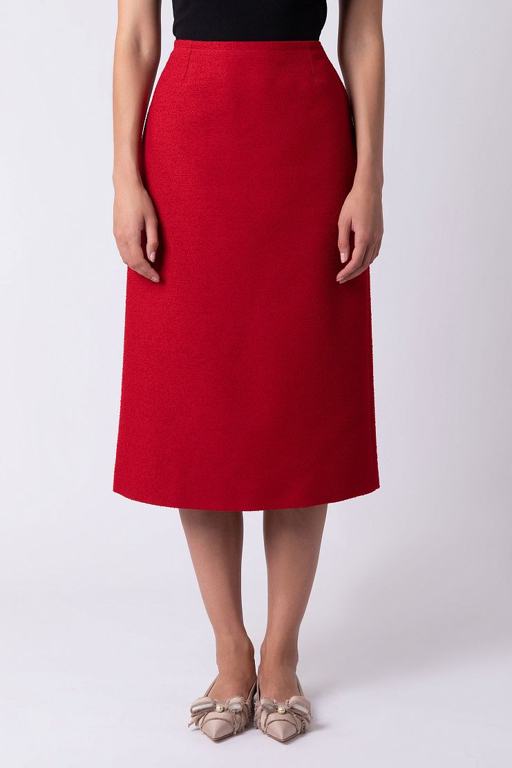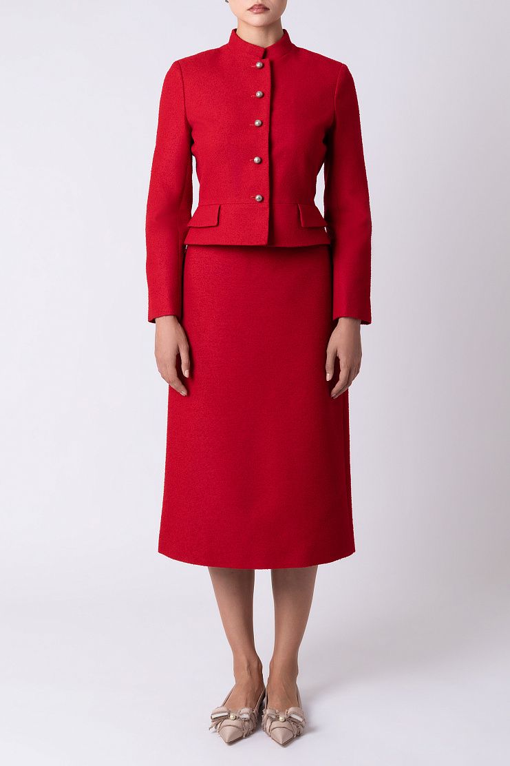 Юбка из мягкой вирджинской шерсти и хлопка составит гармоничный ансамбль с парным жакетом. Модель прямого кроя дополнена прорезными карманами и застегивается на потайную молнию сбоку. Рост модели: 174 см. Размер: 36.