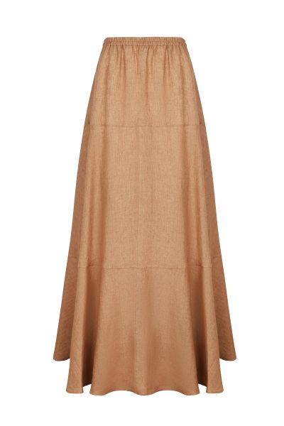 Юбка-макси из льна превосходно подойдет для летнего элегантного образа. Модель свободного кроя с эластичным поясом на кулиске.