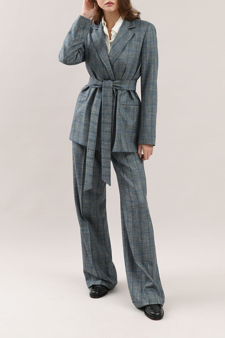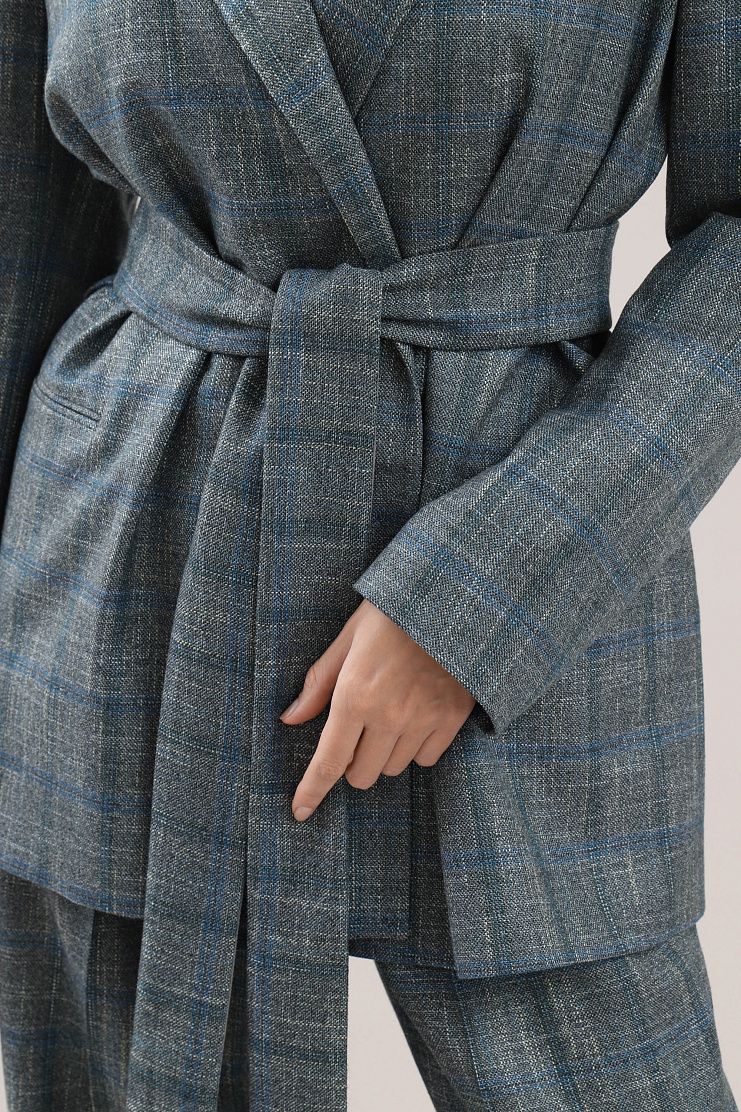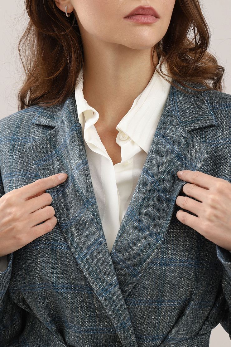 Жакет в клетку прекрасно подойдет для расслабленного элегантного образа. Модель прямого кроя на подкладке имеет боковые карманы и пояс на талию.