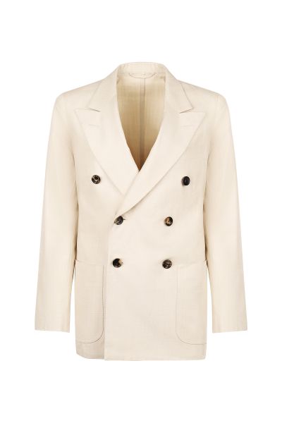 Ощутите вневременную элегантность двубортного шелкового жакета в изысканном исполнении Loro Piana. Модель прямого кроя без подкладки имеет роговые пуговицы, остроконечные лацканы и боковые карманы.
