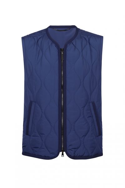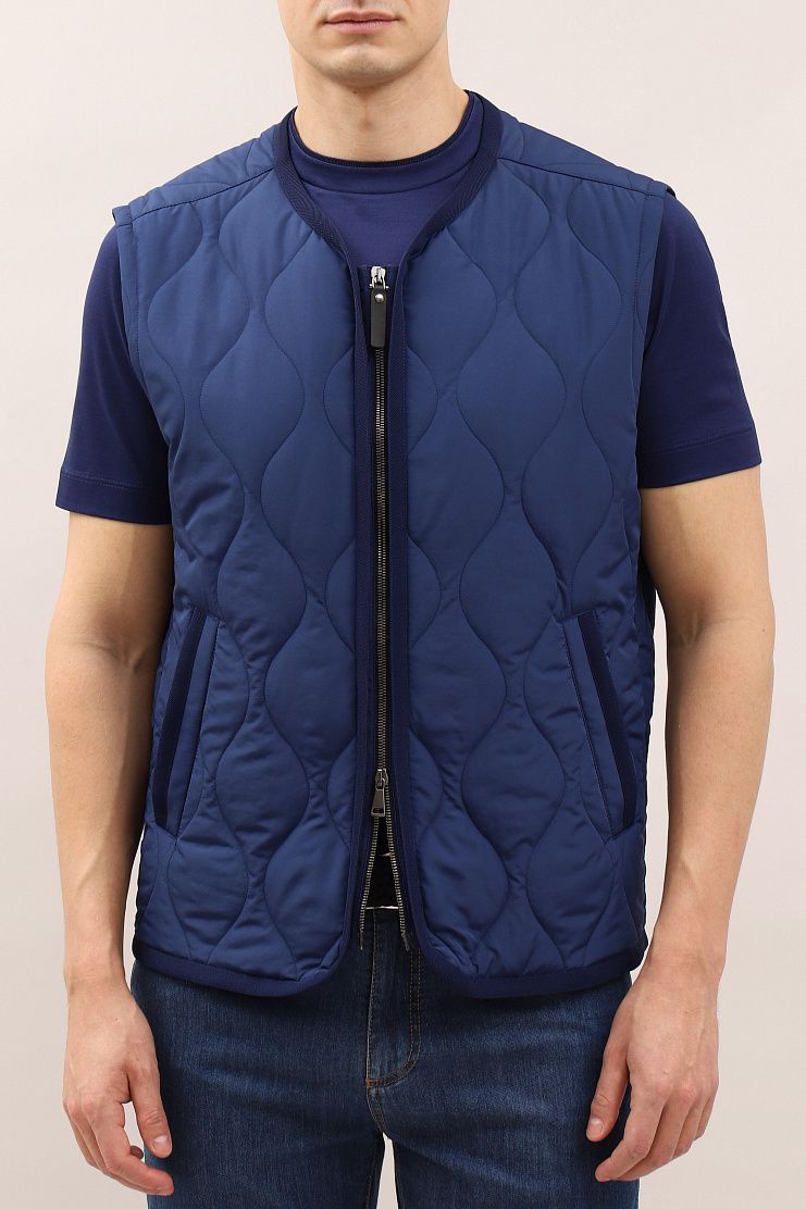 Легкий жилет с волнообразным стеганым узором отлично подойдет для повседневного образа в городском стиле. Модель имеет круглый вырез, боковые карманы и застежку на двойную молнию.