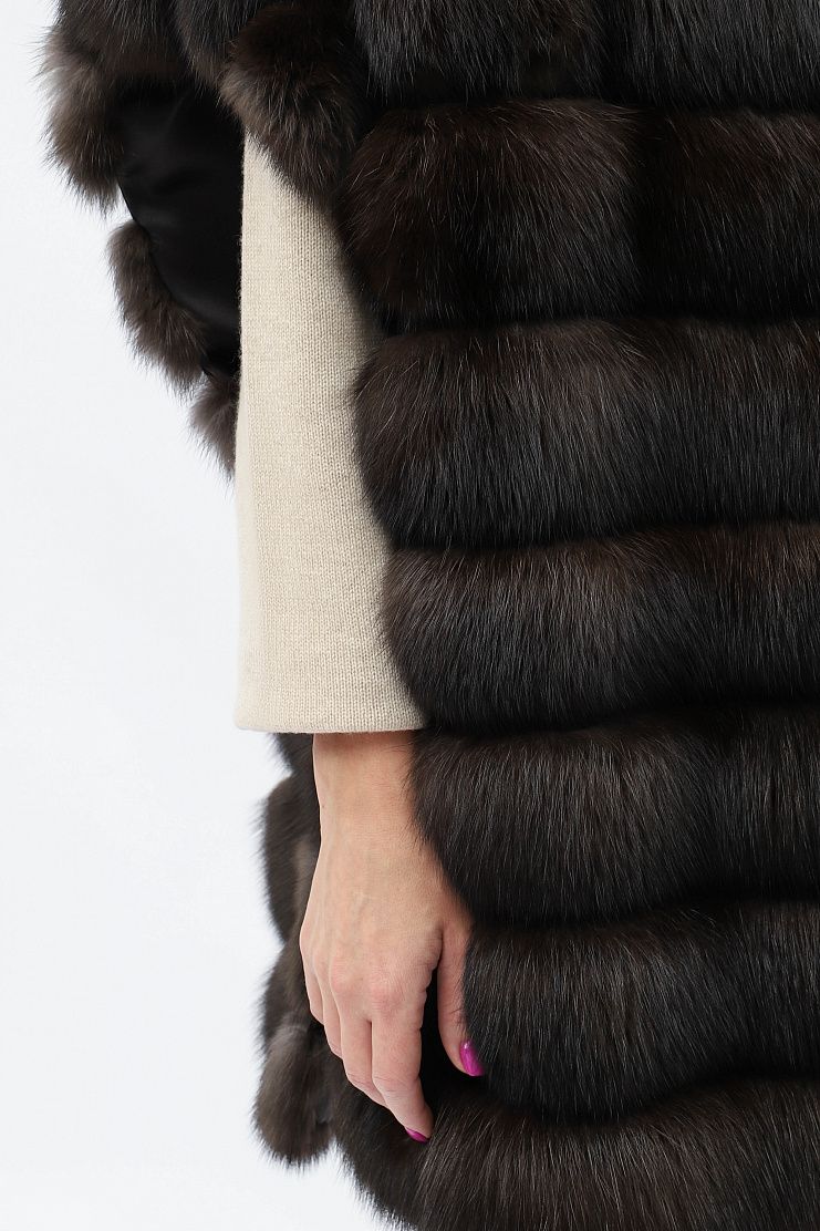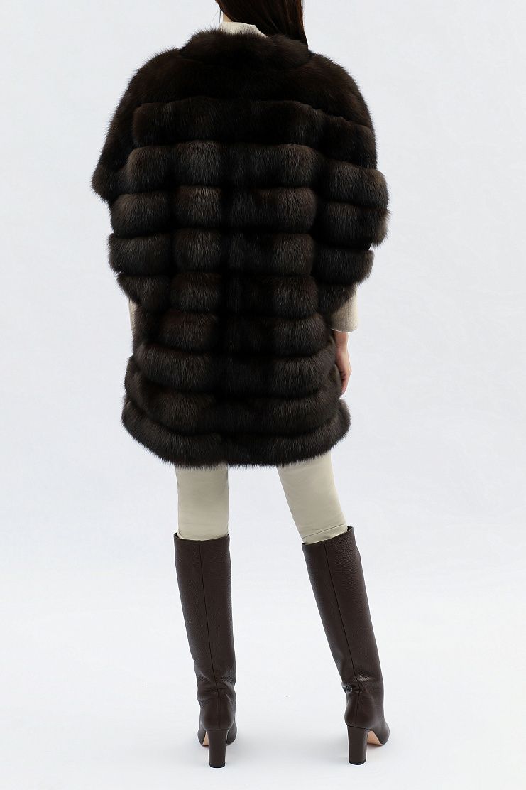 Шикарный жилет из драгоценного меха соболя отличается великолепными теплозащитными свойствами и высокой износостойкостью. В процессе изготовления шкурки тщательно отбираются по оттенку и длине волоса, а затем сшиваются таким образом, чтобы не было видно цветовых переходов.